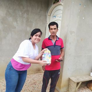 Entrega de víveres a personas de la tercera edad.